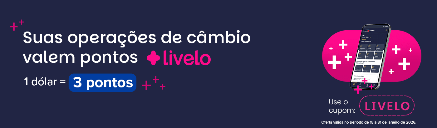 Independentemente do país, quantidade ou moeda escolhida é cobrada a tarifa administrativa de R$ 9,90, na Loja Online e Aplicativo, para enviar dinheiro ao exterior.