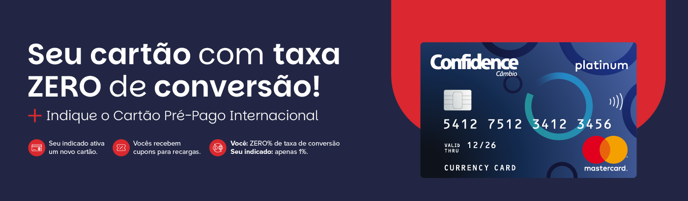 Transações que necessitarem da conversão entre moedas disponíveis no cartão pré-pago internacional serão calculadas usando a taxa de câmbio diária determinada pela Mastercard somada a uma taxa de conversão. Consulte a seção de tarifas e limites em nossa Central de Ajuda.